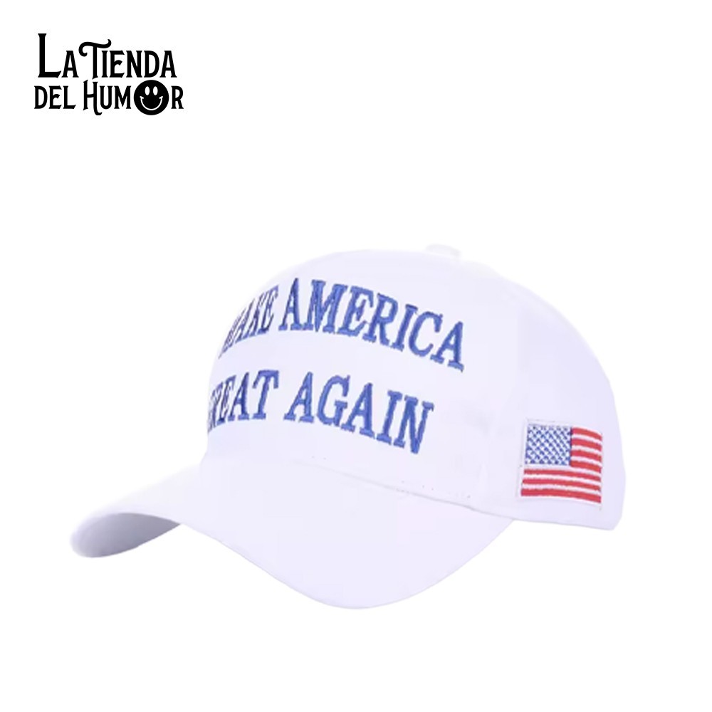 Gorra bordada de alta calidad con el icónico mensaje Make America Great Again o su divertida adaptación Make Spain Great Again. Disponible en tres colores: rojo, negro y blanco.