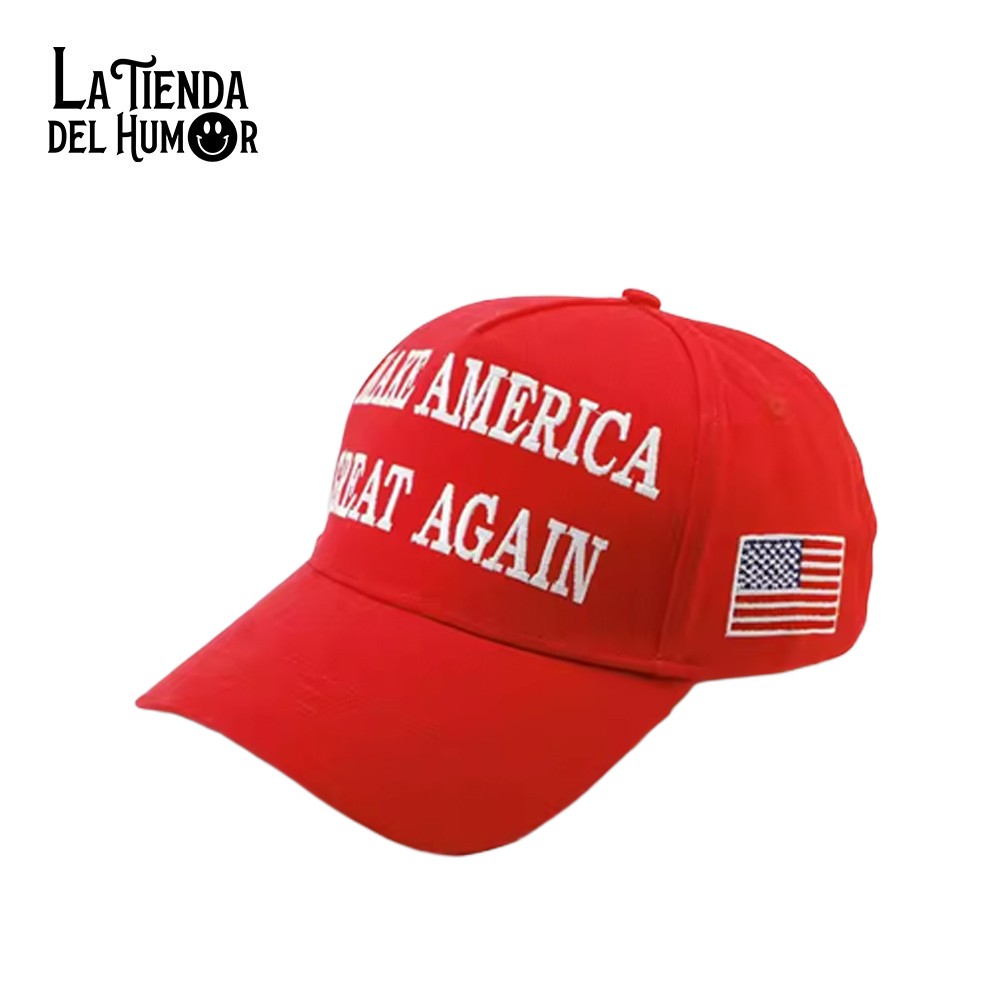 Gorra bordada de alta calidad con el icónico mensaje Make America Great Again o su divertida adaptación Make Spain Great Again. Disponible en tres colores: rojo, negro y blanco.
