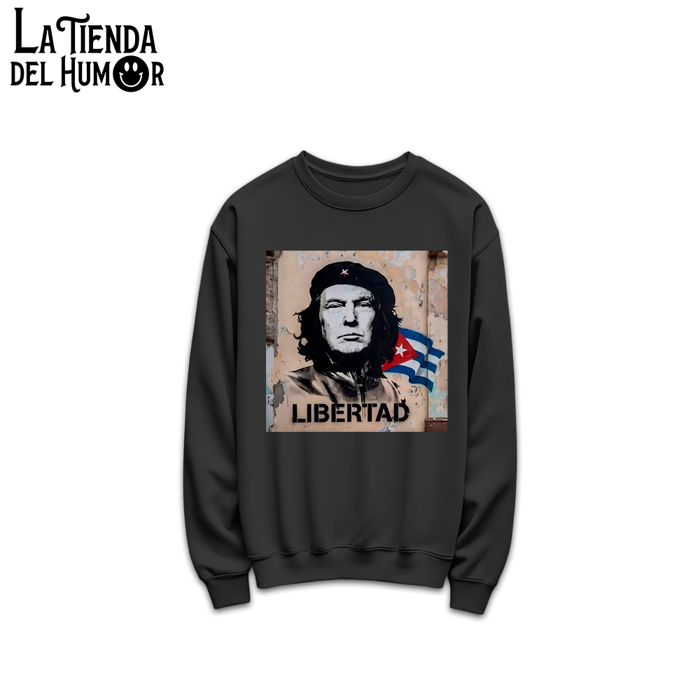 Descubre esta colección de sudaderas sin capucha que reinterpreta la icónica imagen del Che Guevara con el rostro de Donald Trump. Una propuesta visual impactante que mezcla historia, cultura pop y sátira en una prenda única.